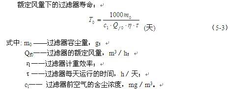 額定風量下的過濾器壽命: