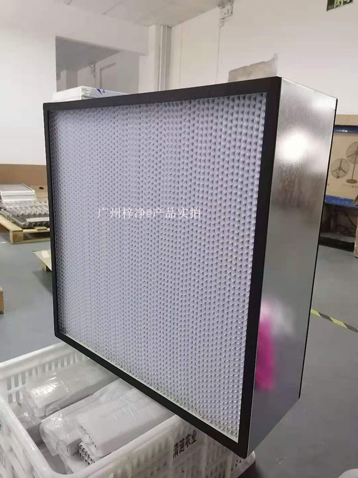 高效有隔板過濾器采用超細玻璃纖維濾紙作濾材,以膠板紙、鋁箔板等材料折疊為分隔,聚氨酯密封膠密封,鍍鋅板、不銹鋼板、鋁合金型材為外框,每臺均經過嚴格則試。